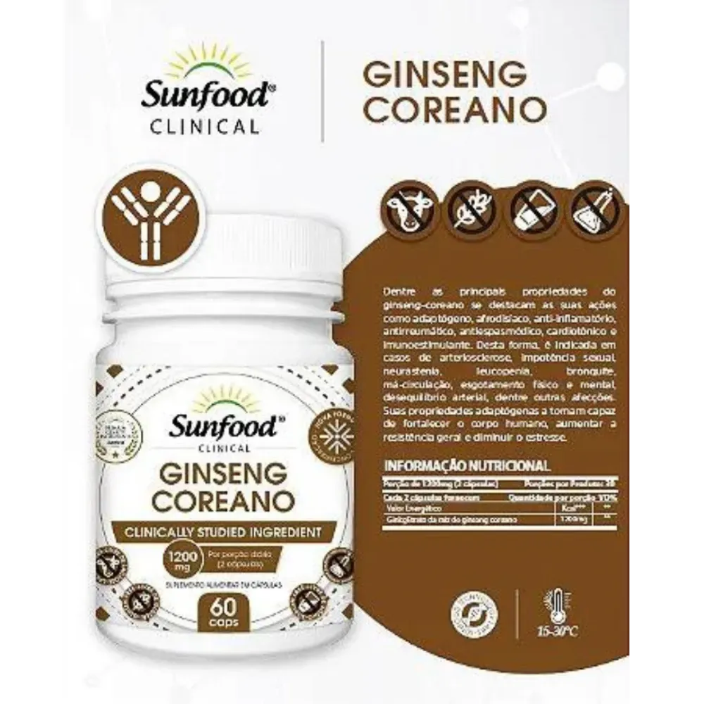 Informação nutricional: 100% extrato seco da raiz de Ginseng Coreano, 60 CAPS 1200mg.